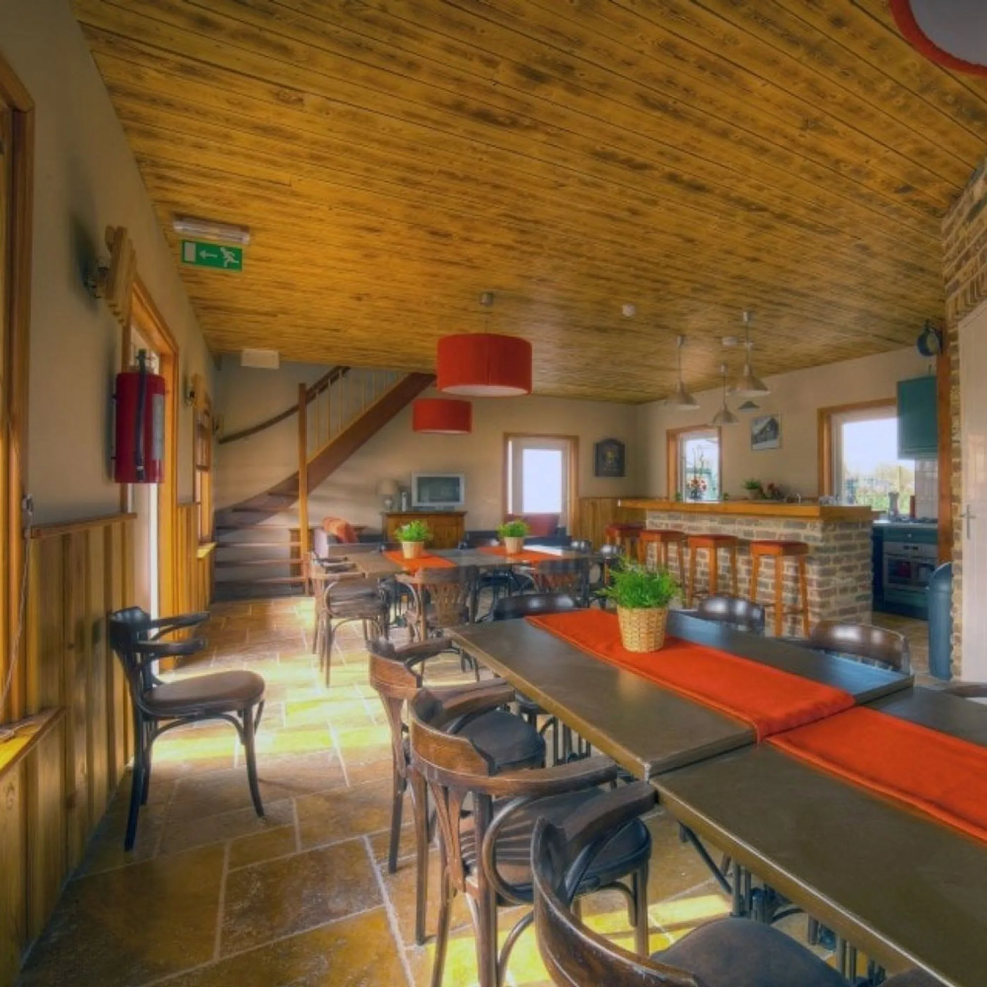 De ruime sfeervolle woonkamer met landelijk uitzicht is sfeervol ingericht en voorzien van alle gemakken. Er is een open keuken met grote eethoek. De keuken is ingericht met een 6-pits gasfornuis inclusief oven, een vaatwasser, grote koelkasten met vriesvak en een magnetron. Vanuit openslaande deuren kan men het overkapte terras betreden en genieten van het buitenleven.